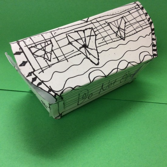 Fourth graders try out a lot of pen and ink textures and value changes, so why not add some of these techniques to a fun paper folded treasure chest.