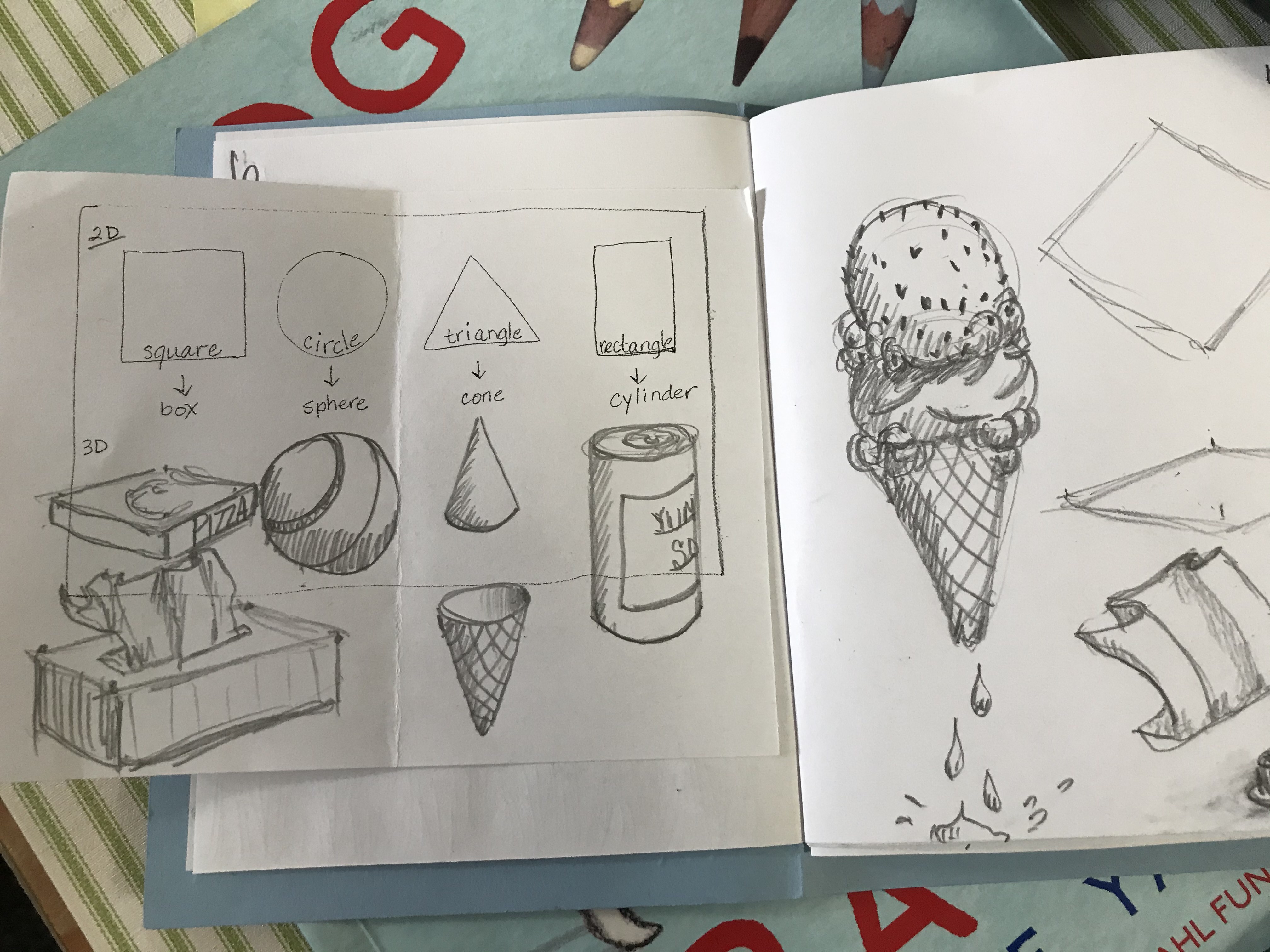 Week 3 – 2D Shapes to 3D Shapes Pencil Glue stick 2Dbasicshapesto3D Print and cut one for your journal then glue on a page. Adding curved lines and foreshortening creates those 2D shapes into 3D shapes. 2D to 3D Shapes Head to WK 4 Share this: Click to share on X (Opens in new window) X Click to share on Facebook (Opens in new window) Facebook Like Loading...